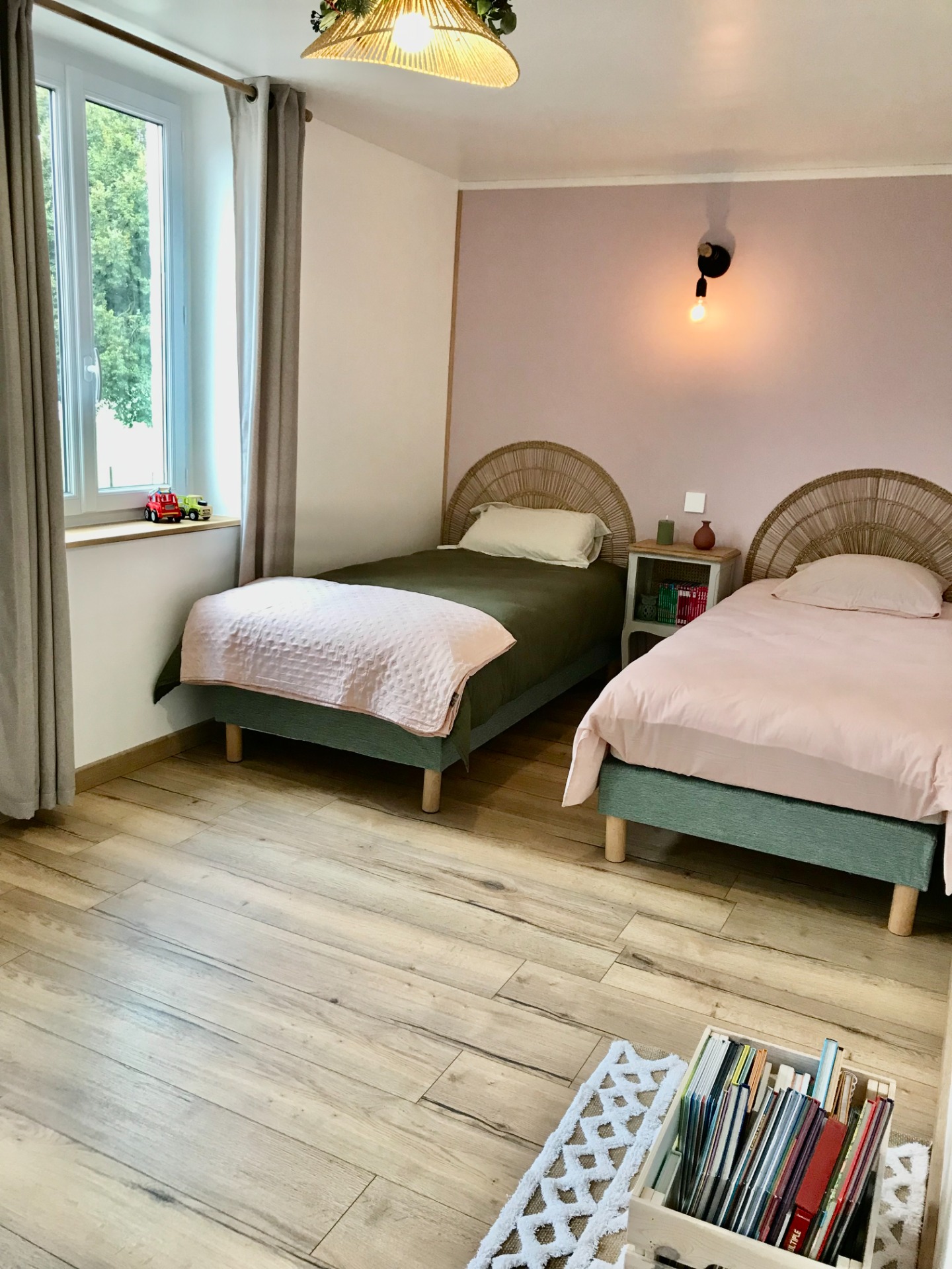 1 chambre 2 lits (90x190) équipée de volets roulants électriques avec possibilité de rassembler les 2 lits pour faire un lit double de 180x190 sur demande.